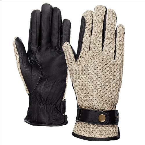 Product DescriptionStylish leather gloves with a crocheted cotton back and leather on the palm. The adjustable strap with a press button gives you added flexibility.0