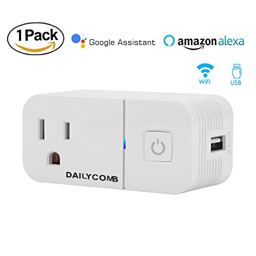 Smart Plug, Works With Alexa & Google Home, USB Charger (5V 2.1A), DAILYCOMB Wi-Fi Mini Smart Outlet With Timing Function, No Hub Required, Easy Connection With TP-Link WeMo Netgear Router(1 PACK)