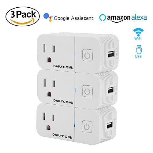 Smart Plug, Works With Alexa & Google Home, USB Charger (5V 2.1A), DAILYCOMB Wi-Fi Mini Smart Outlet With Timing Function, No Hub Required, Easy Connection With TP-Link WeMo Netgear Router(3 PACK)