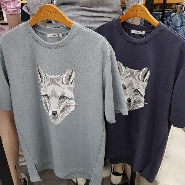 자수로 표현된 여우가 포이트로 들어간 남성 오버사이즈 티셔츠 입니다~매끈매끈한 소재로 입었을때 착용감이 아주 좋은 상품입니다~~! 네이비,민트 도가지 색상이 이며,, 사이즈는 95,100,105