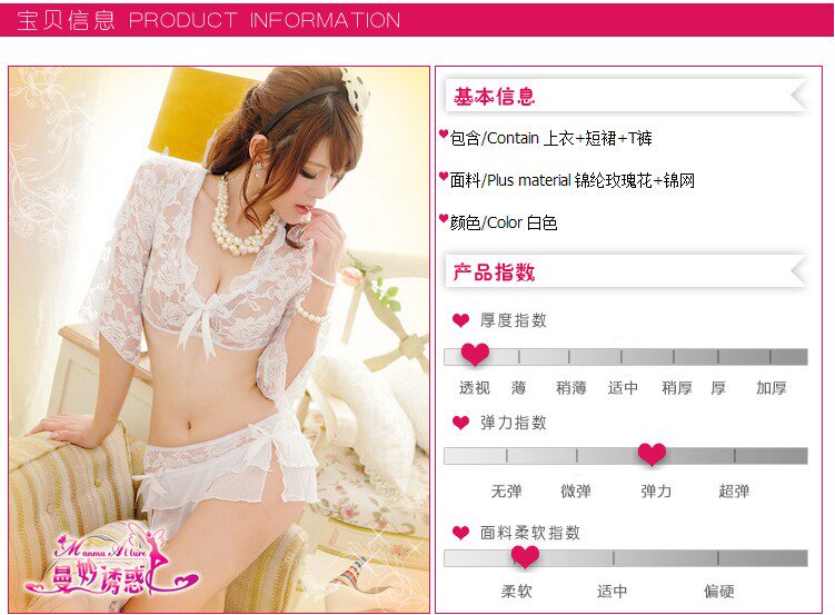 魅惑纯美 白色分体织花蕾丝柔纱睡衣多件套性感透明情趣内衣诱惑