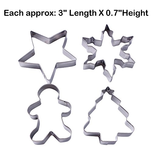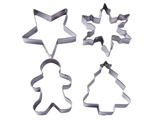 Webake 4-Pack Holiday/Christmas Cookie Cutters, Cookie Cutter Set, Stainless Steel (4-Shape)