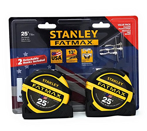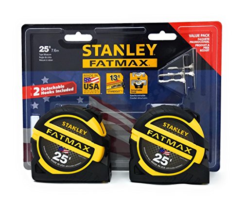 Stanley Hand Tools Fatmax 1-1/4" x 25' Tape Measures (2 Pack) with Detachable Hooks