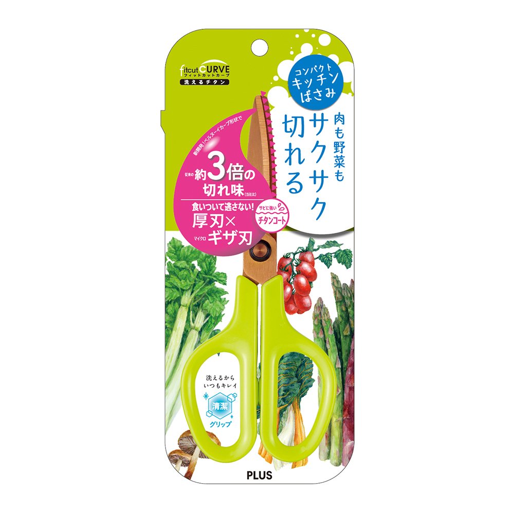 Plus kitchen scissors fit cut curve washable titanium Apple Green 34-696