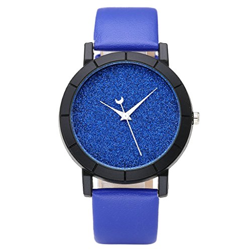 -. Title : Top Plaza Fashion Womens Flash Power Dial Moon Second Hand Non-Scale Black Case Leather Band Analog Quartz Wrist Watch - Blue