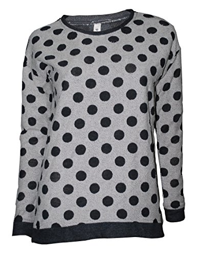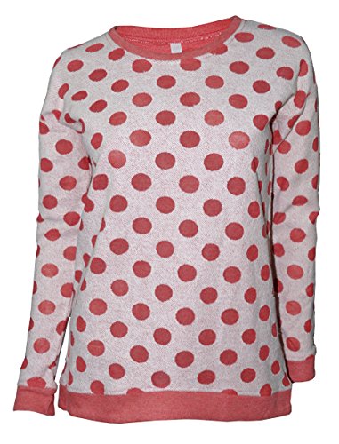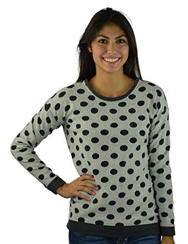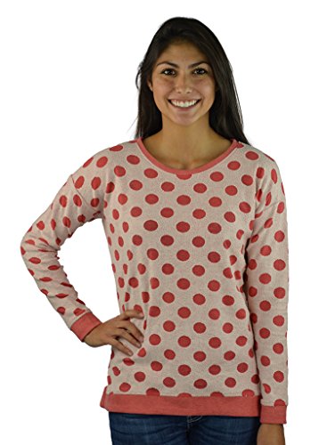 Playful contrast polka dots add burnout texture to a reverse-knit French terry sweater. Contrast trim furthers the whimsical style.Feature