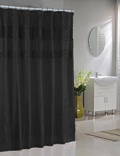 Faux Silk Fabric Shower Curtain: Shimmering Metallic Accents (Black)