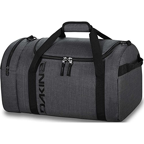 The EQ 74L bag from Dakine is a great gear bag that features a u-shaped opening for easy access, a zippered end pocket to help organize, and a removable padded shoulder strap. It has 4500 cubic inches (74L) of space measuring 27 x 12.5 x 11.5 inches.