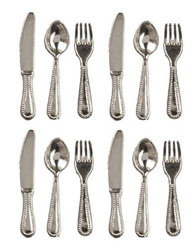 -. Binding : Toy -. Brand : It's Totally Minis -. EAN : 0709951514634 -. Feature : This dollhouse miniature set is 4 place settings with fork, knife and spoon for each. / Each piece is about 3/4'' tall and made of a silver toned metal. / 1" to 1'. 1:12 Scale. This is sized for a dollhouse. / Detailed scale model for adult collectors. Not intended for children under 14. -. IsAdultProduct : 0 -. Label : It's Totally Minis LLC -. LegalDisclaimer : Detailed scale model for adult collectors. Not intended for children under 14. -. Manufacturer : It's Totally Minis LLC -. MPN : ITM0435 -. PartNumber : ITM0435 -. ProductGroup : Toy -. ProductTypeName : TOYS_AND_GAMES -. Publisher : It's Totally Minis LLC -. Studio : It's Totally Minis LLC -. Title : Dollhouse Miniature Flatware, Service for 4, Silver #ITM0435 -. UPC : 709951514634