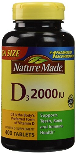 Studio : Nature Made Publisher : Nature Made Binding : Health and Beauty Product Description Maintaining healthy levels of vitamin D in your body has been shown to be an important part of your overall health. Nature Made vitamin D 2000 IU tablets are made of vitamin D3, the body's preferred form of Vitamin D. Nature Made vitamin D3 2000 IU tablet is perfect for the adult who feels they would benefit from a higher dosage (due to low sun exposure in the winter season, heavy sunscreen usage, etc.) or has been recommended a higher dosage by their physician. 0