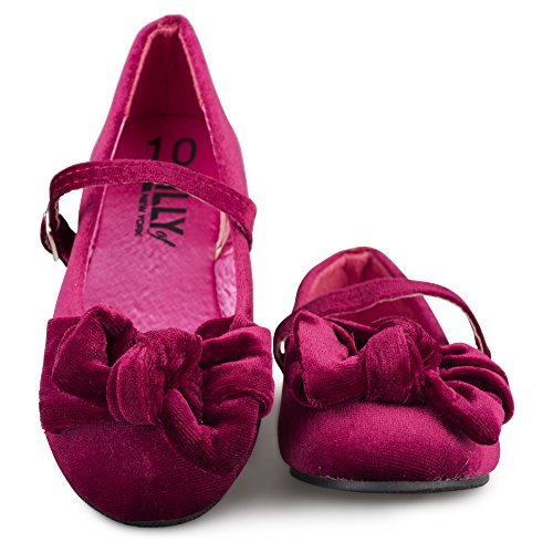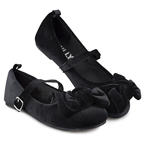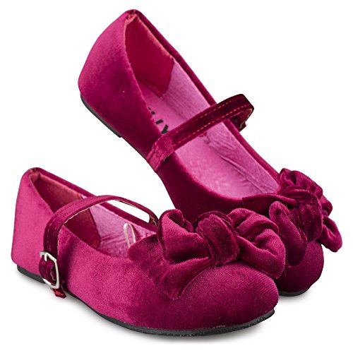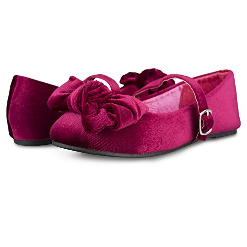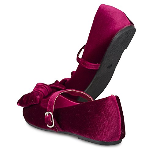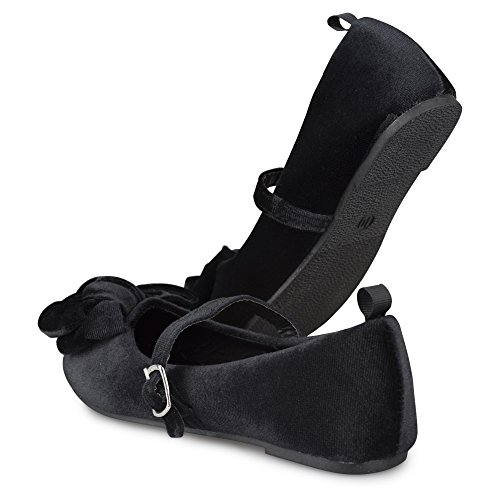 -. Feature : BREATHTAKING BALLET FLATS: No dressy outfit is complete without these adorable mary jane ballerina flats, which offer a breathtaking spin a classic style shoe. / DESIGN DETAILS: Velvet ballet flats with a buckle closure and large, dramatic bow offer a sensational look. / CELEBATION TIME: Wear these flats to any formal event or celebration, such as weddings, holiday parties, family portraits and more. / COMPLETE COMFORT: No need to sacrifice comfort for fashion, as these shoes are comfy for all-day wear. / CHOOSE YOUR COLOR: These shoes are available in Black, Burgundy, Blue and Grey.
