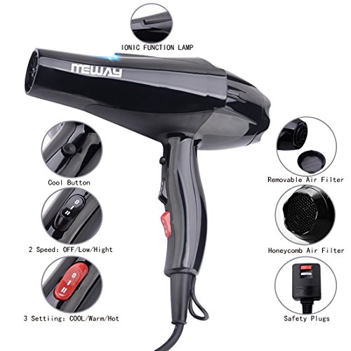 MEWAY 2100W High Power Professional Hair Dryer Household Constant Temperature Fast Drying Ionic Repair Hair Care with 3 Heat 2 Speed Salon Blow Dryer