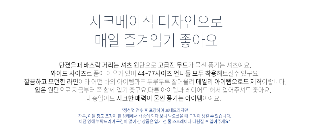 .같은 사이즈라도 체형에 따라 핏감이 조금씩 다를 수 있습니다.