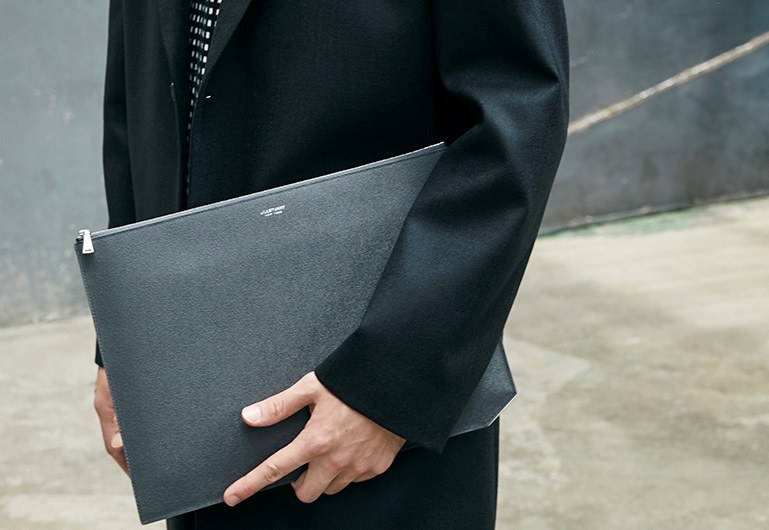 사이드 하단의 실버 바 장식으로 독특한 포인트를 준 클러치백입니다.