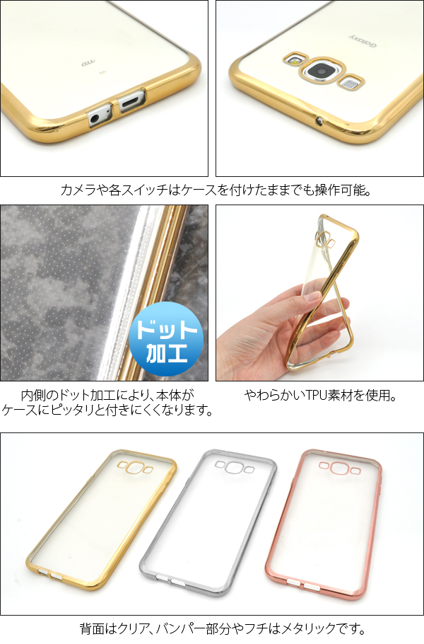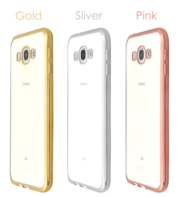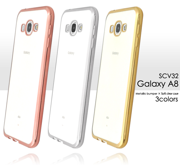 Galaxy A8 SCV32用のメタリックバンパーソフトクリアケース。
