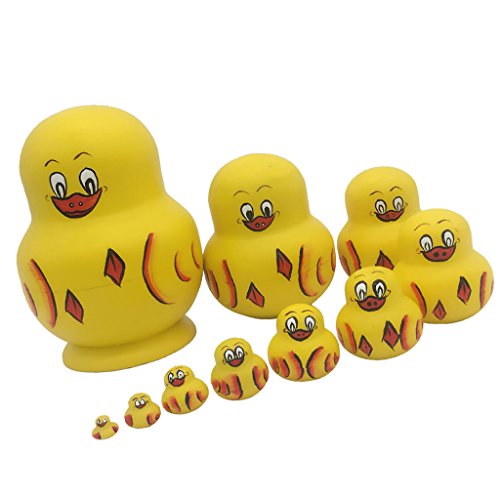 -. Title : MonkeyJack Set of 10pcs Cute Yellow Duck Wooden Nesting Doll Matryoshka Russian Dolls