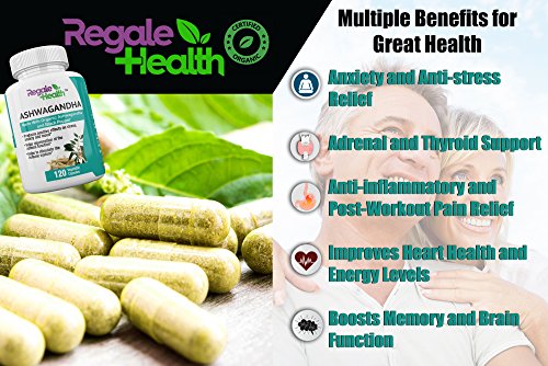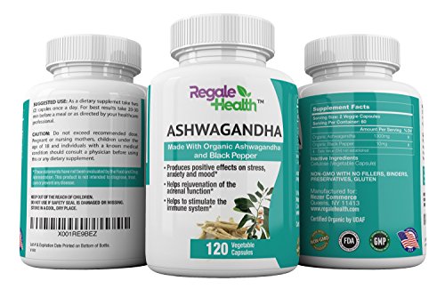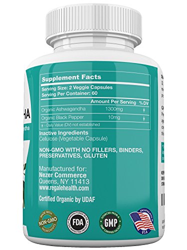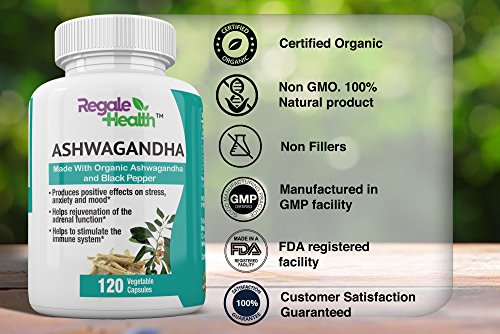 This high potency formula by Regale Health contains 1300 mg of organic ashwagandha and 10mg of organic black pepper for increased absorption, and is formulated for maximum efficiency and the best results.