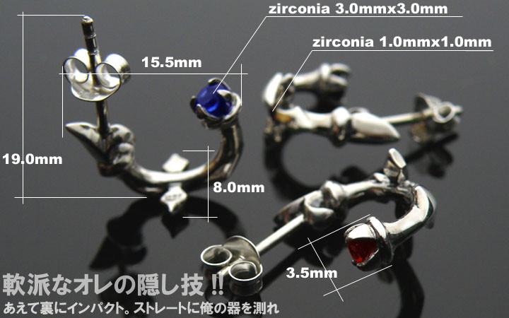【素材】シルバー925    CZ (レッド)径3.0mm×3.0mm   CZ (ブルー)径1.0mm×1.0mm
