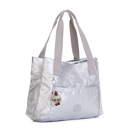 -. Brand : Kipling -. Department : womens -. Feature : Coated crinkle nylon / Two shoulder straps / Inside: three main compartments, one with zip closure and two with snap closures / Furry Kipling monkey keychain / Fabric: Nylon -. Model : P-HB6834 -. MPN : P-HB6834 -. PackageQuantity : 1 -. PartNumber : P-HB6834 -. ProductGroup : Shoes -. ProductTypeName : HANDBAG -. Title : Kipling Women's Valerie Metallic Handbag If keeping organized is at the top of your to-do list, this handbag is for you. It's designed with a triple compartment, each with its own zip or snap access from the top! Dimensions: 16" x 12.25" x 7" Weight: 0.95 lbs