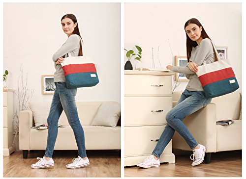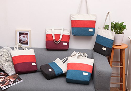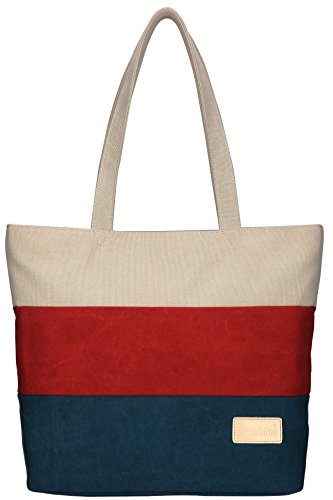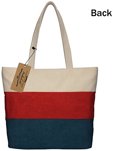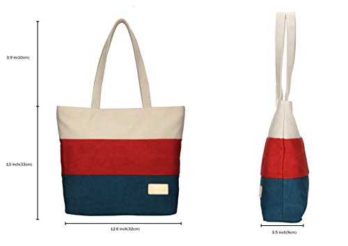 ArcEnCiel Women's Canvas Shoulder Hand Bag Tote Bag (Red&Blue)