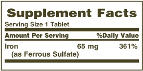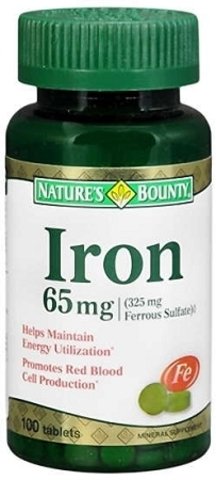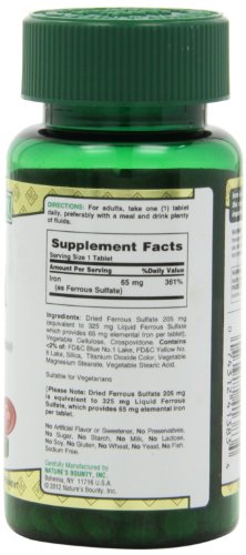-. Title : Nature's Bounty Iron 65 Mg.(325 mg Ferrous Sulfate)