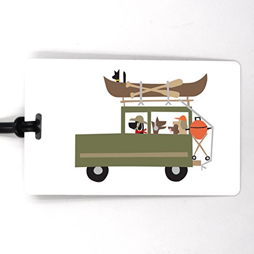 All R. Nichols designs begin as intricate hand cut collages. This art style creates the joyful and funny silhouette images. These assorted luggage tags show dogs on different adventures - going camping, tongues wagging in the wind, off for a Sunday drive on the yellow bus heading to some much needed obedience school. Super fun and great for any dog owner or lover.