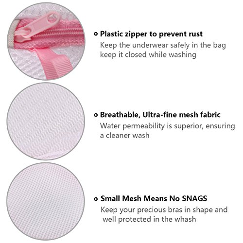 - INNOVATIVE DESIGN - The top and bottom of the bra laundry bags are reinforced with a plastic frame that protects your bras from deformation