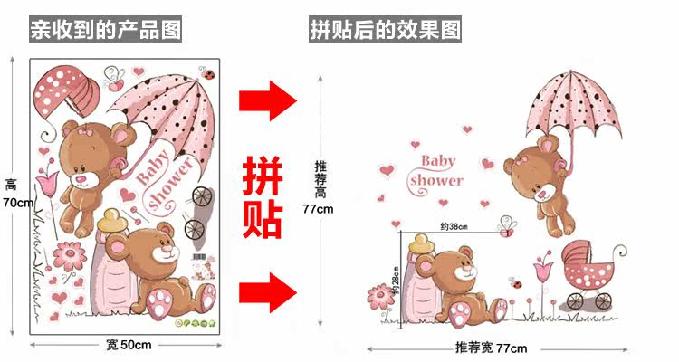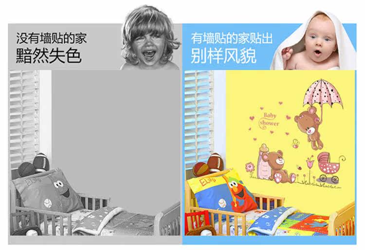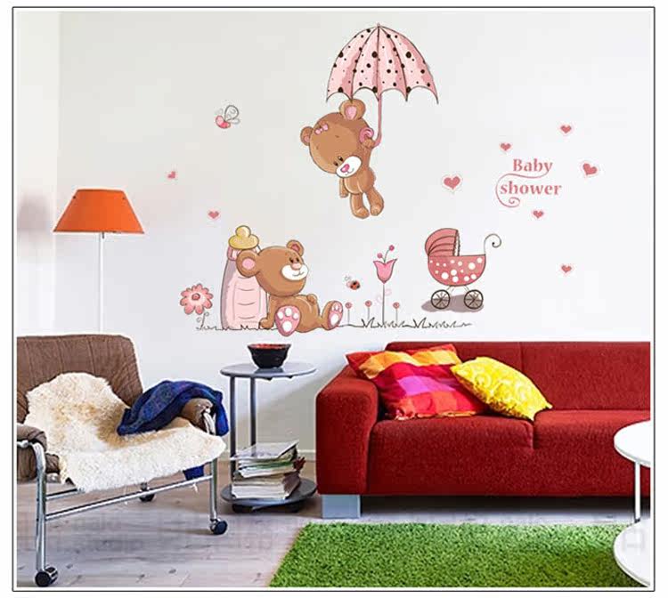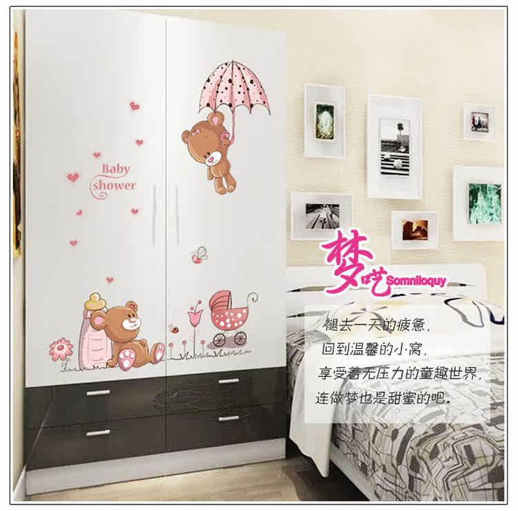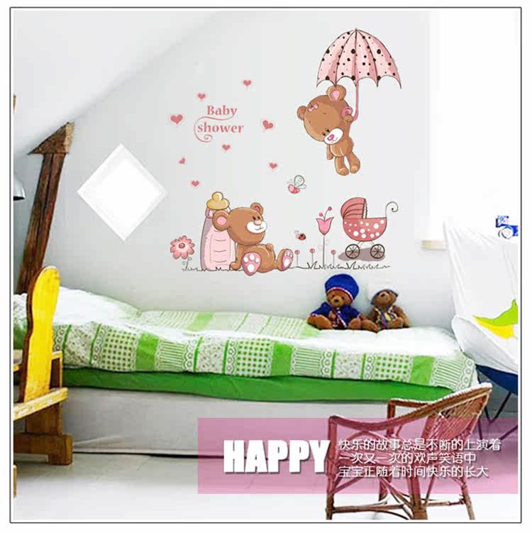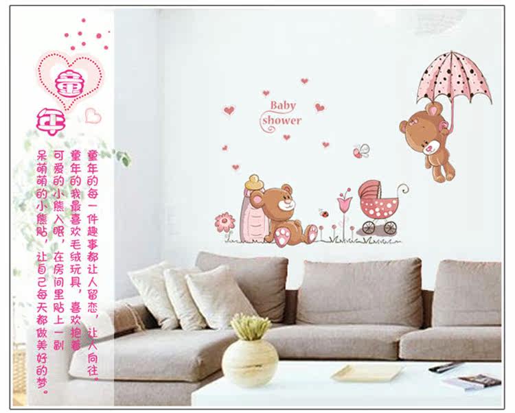 墙贴 可爱卡通儿童房卧室装饰宿舍布置可移除墙贴纸 跳伞小熊