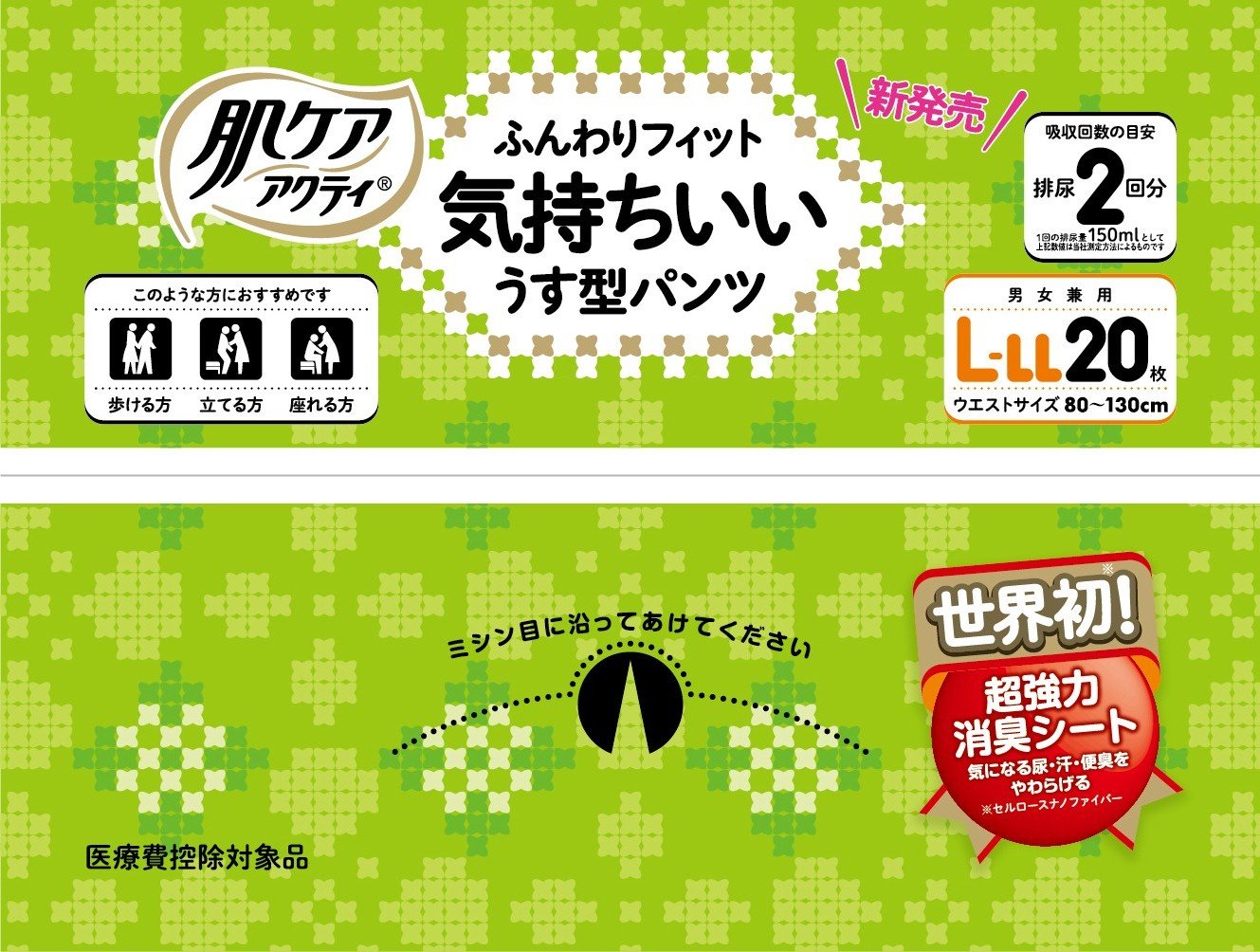 Absorbent slit structure, it is hard to leak because it fits perfectly in the crotch.