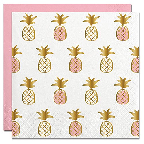Slant Gold Foil Pink Pineapples Paper Beverage Napkins