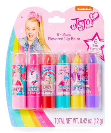 Just like JoJo Siwa Flavor your Lips with this 6 pcs flavored lip gloss set. Featuring 6 lip balms with a hint of fruity flavors, giving little ladies a range of flavorful options. Nickelodeon JoJo Siwa Flavored Lip Balm Set includes 1 of each flavor. Watermelon, Berry, Cherry, Bubble Gum, Banana and Pineapple .Fruit up that beautiful smile with your flavored Jojo Siwa Lip Balm of the day!Feature