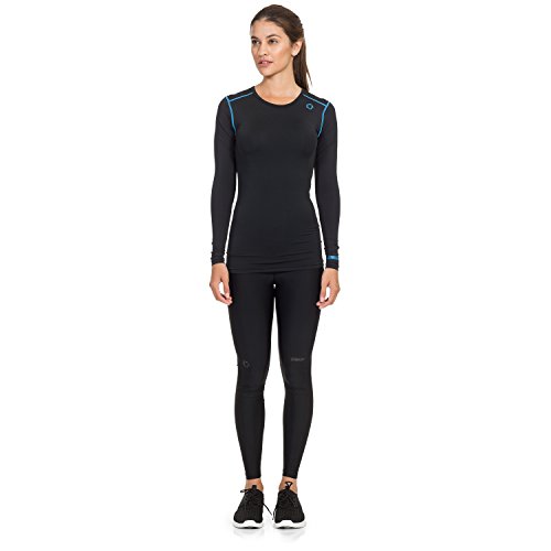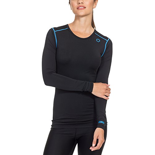 Gregster Kompressionsshirt fur Damen in schwarz und lila bis Grosse XL - Sportshirt langarm atmungsaktiv zum Laufen und fur Sport