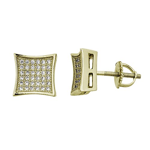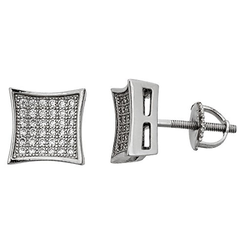 Sterling Silver Rhodium Micropave Curved Square 9.70X9.70mm Screw-Back Stud Earring