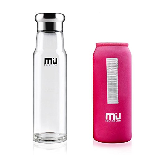 -. Feature : ★ SUMMER DEALS: Just $16.99 Now! Seize the opportunity! / MORE HEALTHY BOTTLE: Compared with other original water bottles, MIU COLOR BOTTLE made of high Borosilicate glass and Stainless Steel, High Heat Resistant and Strength, BPA and PVC Free won't release Lead and toxic chemical / UNIQUE and STYLISH DESIGN: Different with original water bottle, MIU COLOR bottle was designed in Switzerland, fluent and sleek design fits car cup holders for travel / PORTABLE and REUSABLE SLEEVE: With the colorful Nylon Sleeve for protection, decoration and greater insulation in temperature of water bottle, also portable for carrying / GREAT VALUE: Perfect for everyday use, just refill it with your favorite healthy drink, tea, juices,etc. Take it with everywhere you go: indoor, traveling, fitness and exercising