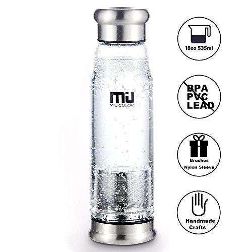 -. Title : MIU COLOR® 18 oz Glass Water Bottle - Portable BPA and PVC Free Tea Bottle, with Tea Infuser, Colorful Nylon Sleeve, Bottle Brush, Solid Water Bottle for Bike, Outdoor, Running