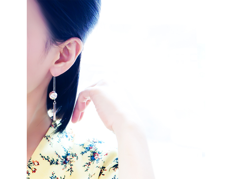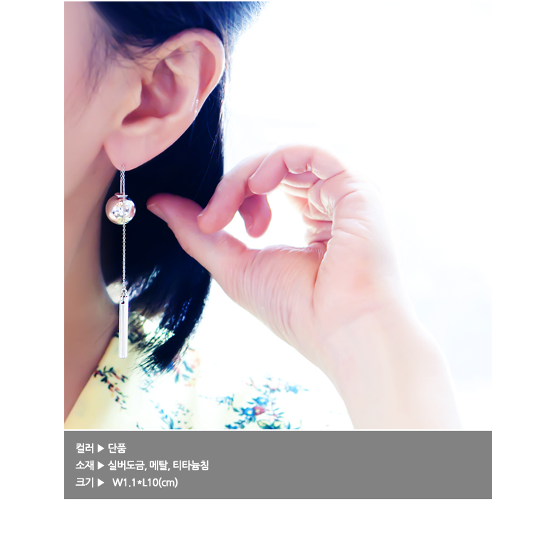 귀침을 볼에 끼우는 형식의 드롭 이어링입니다.