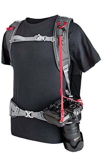Proprietary and patent-pending ClikDraw system including a camera tether that attaches to a shoulder strap of the Pro Express via a rock solid Black Diamond carabiner.