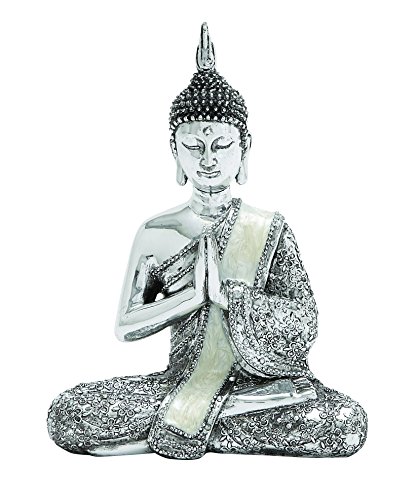 Benzara Poly Stone Sitting Buddha Assorted with Silver Finish
