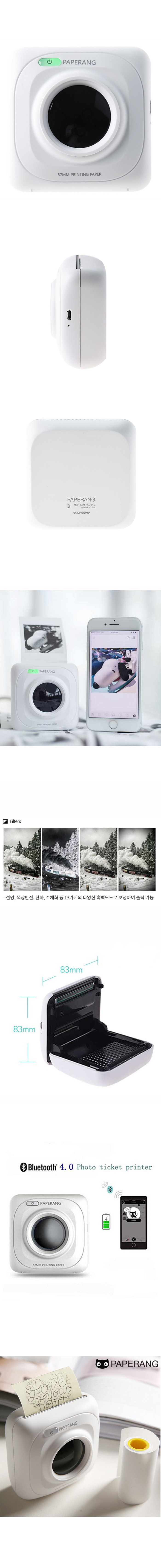 An unprecedented free editor: Multi-font style, multi-filter effect, personality template theme Unimaginably small pocket printer,the black and white version of polaroid with battery inside,direct Bluetooth connection. Product Description : PAPERANG P1 Portable Print Speed:90mm / sMax. Resolution:300dpiInterface Print media :thermal paper 3C certificate number :2016010904840197 Printer Voltage:100-240VPaper Printing Max Paper Size:58mm Thermal Size:83*83*45mm