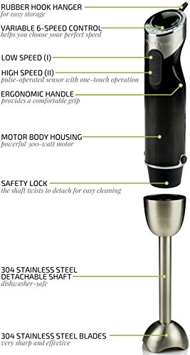 Powered by 500-Watts and a heavy-duty motor, it works quickly and effectively-expertly mixing anything you desire into a smooth, evenly-mixed medley of mouth-watering flavors. Its Slim-Stick design enables this hand blender to fit into any mixing bowl, pot, beaker, or cookware without restriction. It's compact enough to fit anywhere, but powerful enough for the toughest blending jobs. It was also carefully designed to come apart easily so that clean up and storage is no problem. Simply take apart, then hand wash shaft/attachments or place into the dishwasher and let dry.