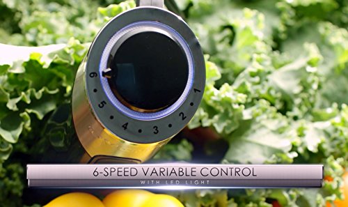 -Features: 6-Variable Mixing Speeds, Soft-Touch Turbo Button for Pulse Operation, Blue LED Indicator Light