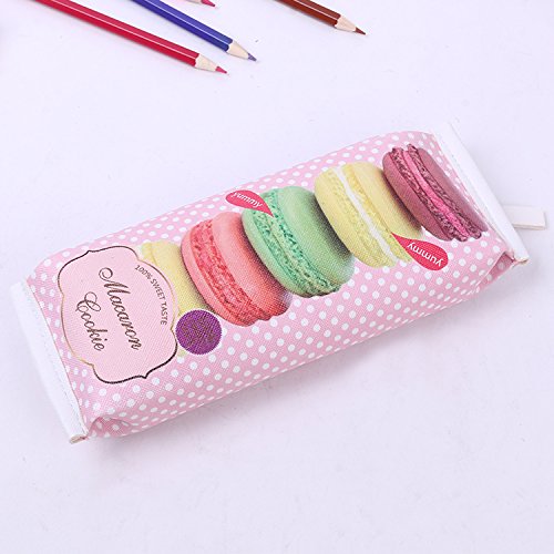 Funnylive Creative Pencil Case Cartoon Cookies Pen Bag Student Stationery Purse (Macarons pink)