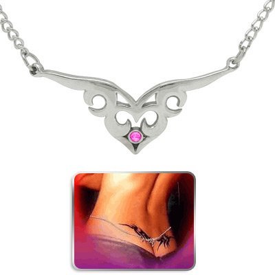 (playful piercings)/Accessories/Belts Buckles/DIRECT FROM USA/SEXY! Pink Tribal Swirl Heart Lower Back Belly waist chain fashion body jewelry