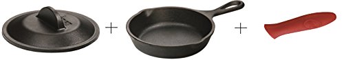 -. Title : Lodge Cast Iron Skillet, 5" lid and Silicone Hot Handle Holder - Kelly's Kitchen Bundle
