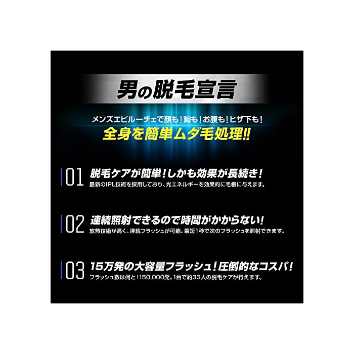 화제의 가정용 탈모기『에피 루 최 epiluce』부터 맨즈용이 마침내 등장!제치지 않는 깎지 않기 때문에 아프지 않는다!면도기 있지 않고 학《스베》또한 피부(기)에 이끕니다!연사플래쉬에 수염이나 전신을 스피디로 쓸모 없는 털 케어!탈모 살롱에 가고 싶은 하지만,시간과 수고 비용이 든다.그런 고민을 모두 해결!맨즈 에피 루 최에 본격광 에스테틱 하지 않습니까!?