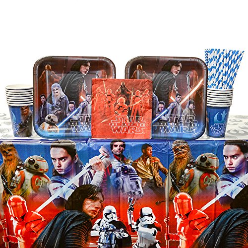 -. Title : Star Wars Episode 8 - The Last Jedi Party Supplies Pack for 16 Guests: Straws, Dinner Plates, Luncheon Napkins, Cups, and Table Cover (Bundle for 16)