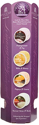ReleaseDate : 2015-05-15 Studio : Cuccio Publisher : Cuccio Binding : Health and Beauty Product Description This luxurious, rich and stylish butter tower from Cuccio allows you to increase sales by offering a luxurious take home Cuccio natural butter blend experience. As products are sold, the self gravity-fed display automatically drops the next item down the tower for easy access. Lemongrass lavender butter babies are perfect for on-the-go in a travel friendly 1.5 ounce . Size. Includes six 1.5 ounce . Butter blends per display. 0