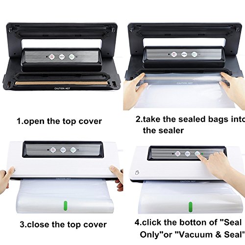 【VACUUM SEALING MACHINE WITH MORE FUNCTION YOU DON'T KNOW】Not only for vacuuming and sealing fresh meat, fruits, medicine, tea, jewelry, and important files,letter, but also for sealing and safekeeping of other electronic product and metal parts. High power and seals foods in seconds can keep your foods always fresh, it saves your time in buying foods and organizes space to store foods.