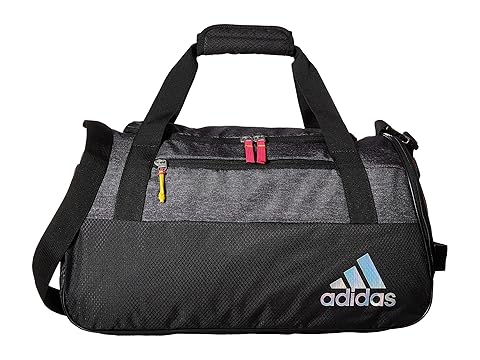 SKU: #8939641 For the active gal with gear to haul, adidas® makes your next gym trip an organized one. Padded, removable, adjustable shoulder strap with padded haul handles for easy transport. Spacious main compartment with classic U-opening. Tricot-lined media pocket. Mesh water bottle pocket on side. Multiple zip pockets inside for small valuables. Convenient internal key fob. Ventilated shoe-tunnel with FreshPAK™ technology inhibits odor-causing bacteria so your bag and gear stay fresher, longer. adidas brandmark on front and shoulder pad. Webbing haul handles at top of bag and side pocket. Metal zipper-pulls with color-matching webbing pulls. Material:· 600D polyester.· Polyester dobby. Imported. This product may have a manufacturer#x27;s warranty. Please visit the manufacturer#x27;s website or contact us at warranty@support.zappos.com for full manufacturer warranty details. Measurements: Bottom Width: 20 in Middle Width: 19 in Top Width: 16 1?2 in Depth: 10 in Height: 11 1?2 in Strap Length: 19 1?2 in Strap Drop: 8 1?2 in Accessory Strap Length: 46 in Accessory Strap Drop: 22 in Weight: 1 lb 0.8 oz |