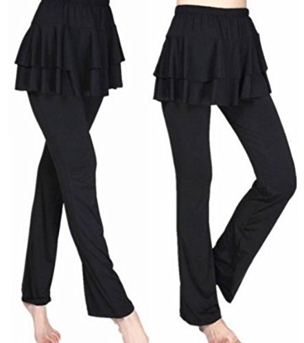 phalatina 프리 프리 프리티 힙 라인 요가 팬츠 스커트 부착 휘트니스 에어로빅스 댄스 트레이닝 짐 (03.블랙(L)